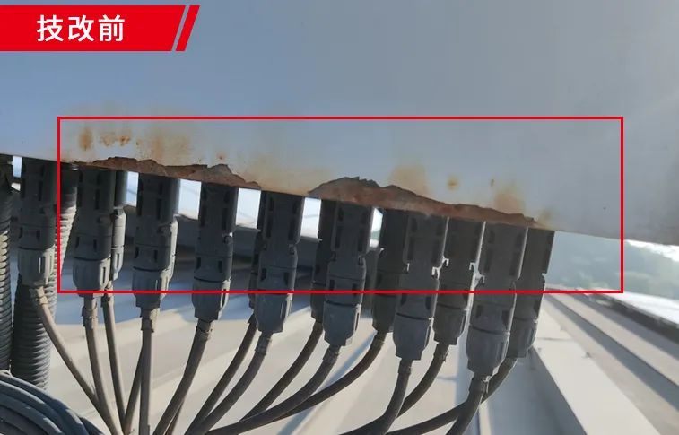 2、將現(xiàn)場生銹匯流箱做除銹或整機更換,保障匯流箱的使用年限。
